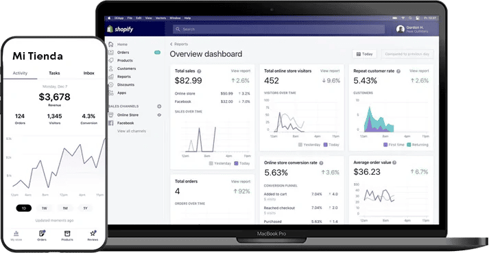 Gestiona pedidos, carga productos, envía notificaciones a tus clientes, etc.